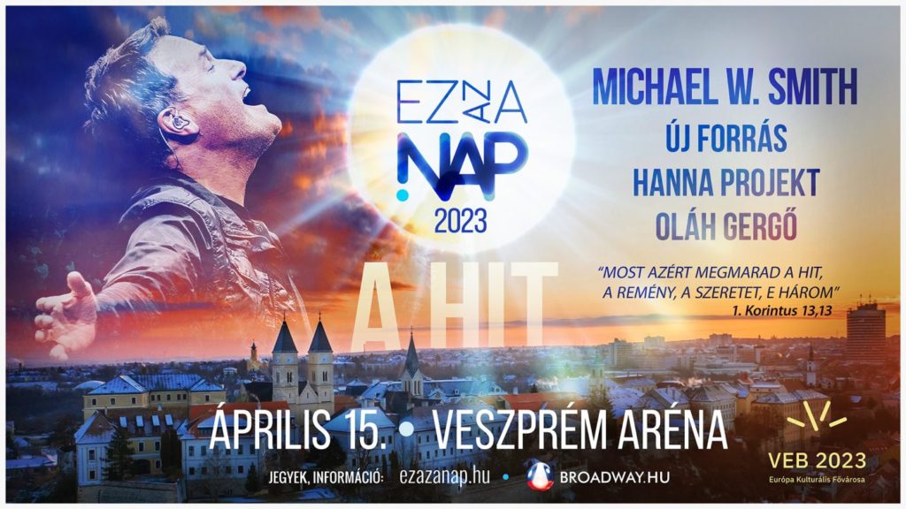 Április 15-én a nemzetközi keresztény könnyűzene egyik legismertebb alakja, Michael W. Smith lép színpadra a Veszprém Arénában. Fellép még Oláh Gergő, az Új Forrás zenekar és a Hanna Projekt. László Viktor az „Ez az a nap Alapítvány” alapítója és vezetője elmondta, hogy ennek az évnek a „hit” a központi mottója, és hogy ez nem csak a templomokban létezik, hanem megnyilvánul az életben is. A Veszprém-Balaton 2023 Európa Kulturális Fővárosa program keretében megvalósuló eseményre az ország bármely pontjáról kedvezményes vonatjegy váltható.